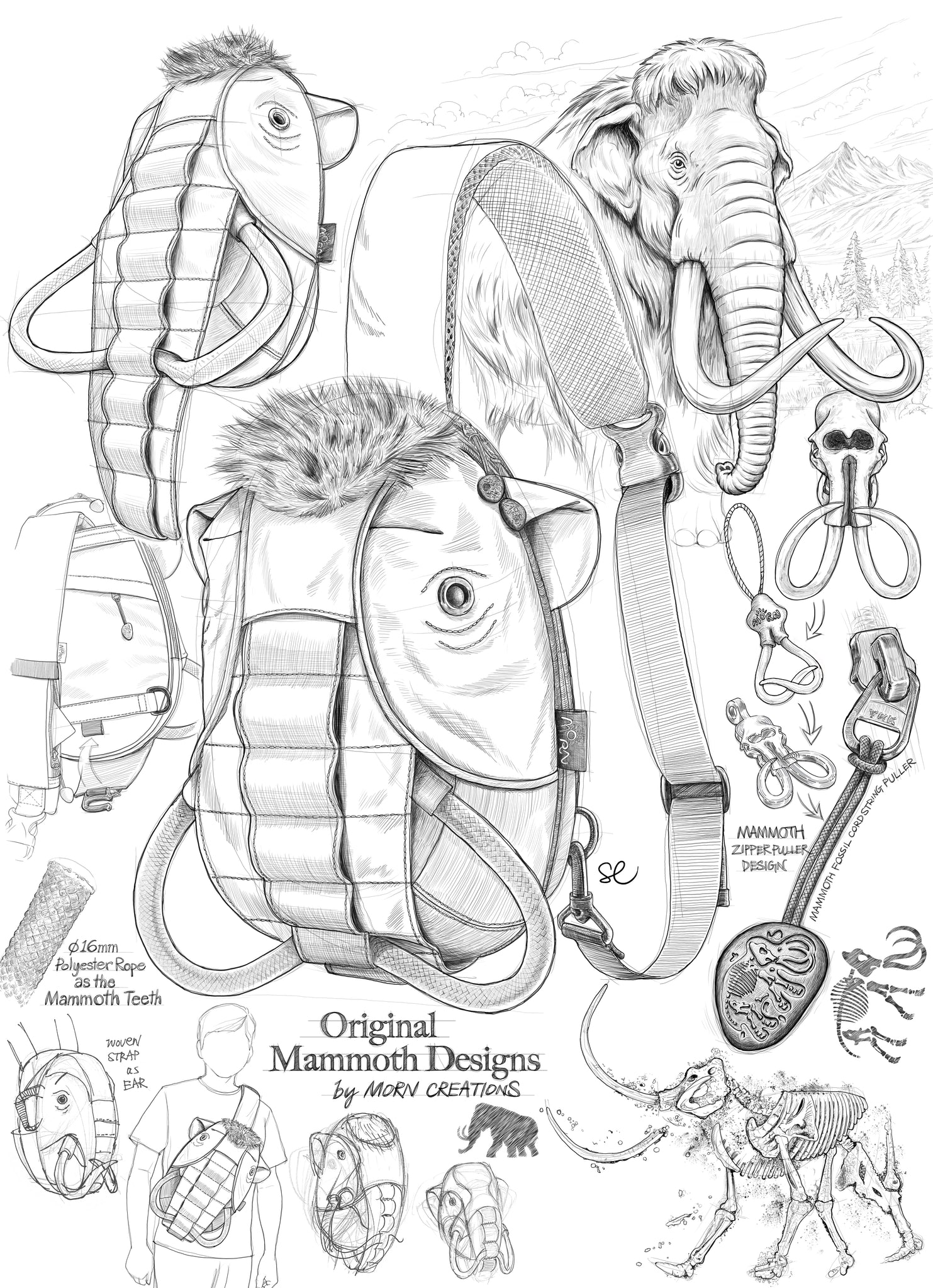 ジッパーチャームはマンモスの骨格をモチーフに描き起こしたしたMORNオリジナルです。